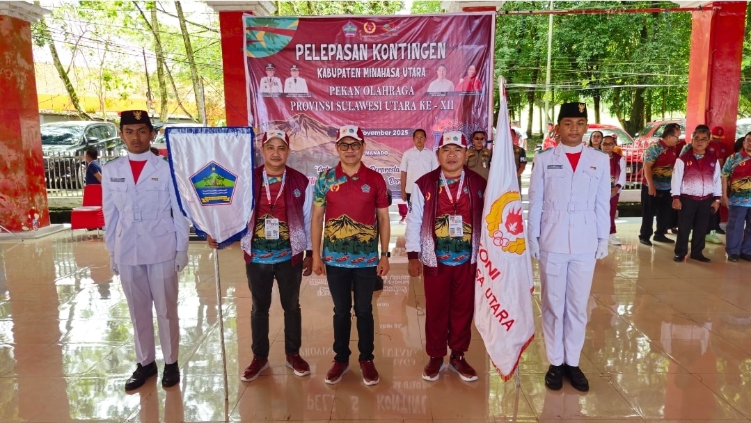 MINUT, Titikkomanews — Bupati Minahasa Utara Joune Ganda resmi melepas keberangkatan Kontingen Kabupaten Minahasa Utara untuk mengikuti Pekan Olahraga Provinsi (Porprov) Sulawesi Utara Tahun 2025. Acara pelepasan yang berlangsung penuh semangat ini turut dihadiri Ketua KONI Minahasa Utara, Denny Lolong, bersama jajaran pengurus KONI, para pelatih, serta seluruh atlet yang akan bertanding.