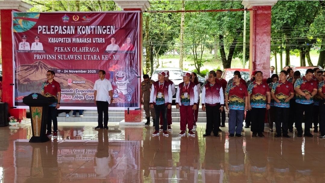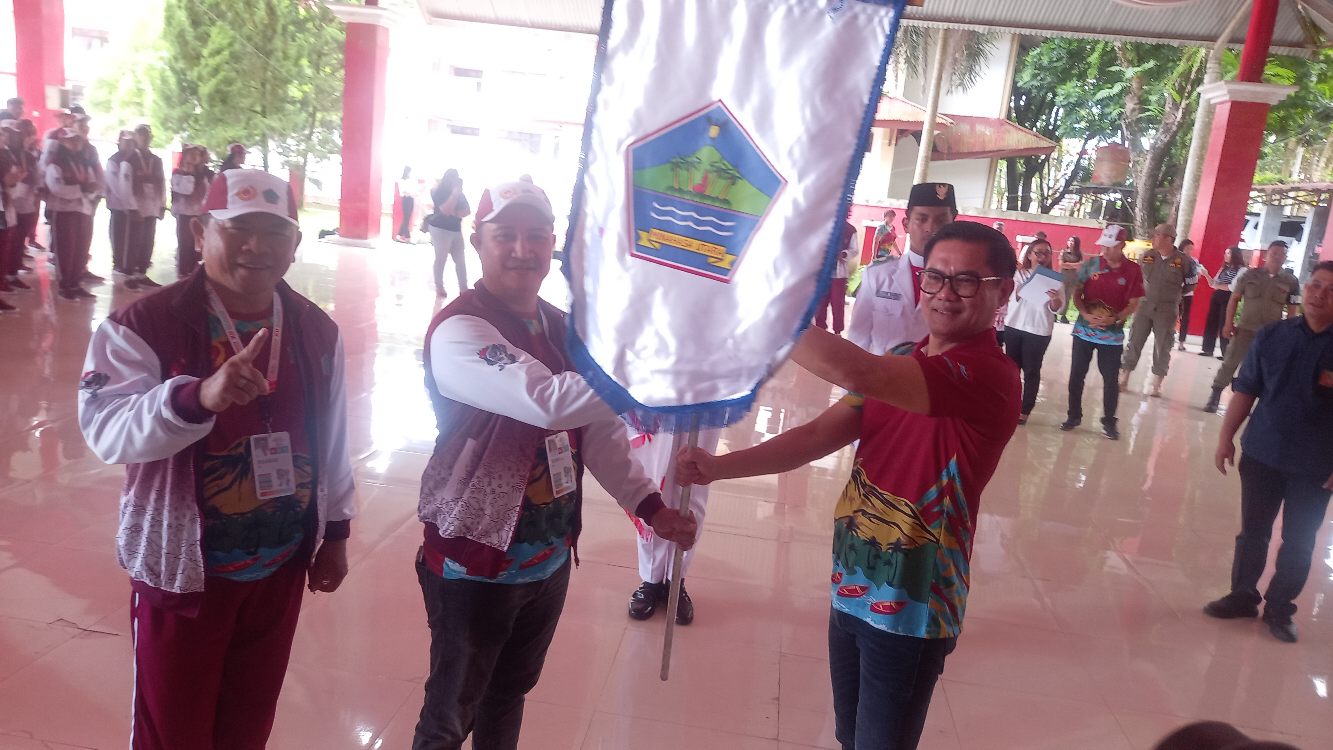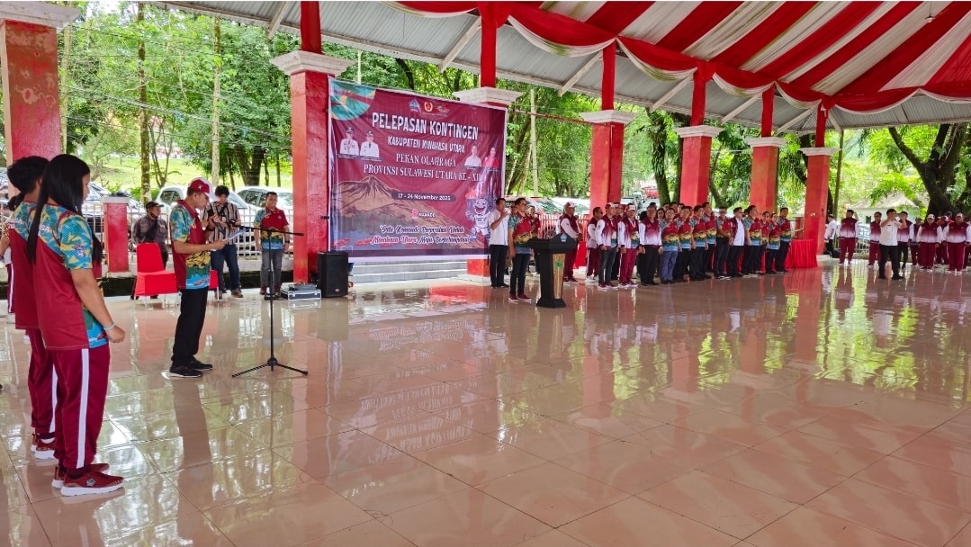Pelepasan kontingen ditandai dengan penyematan jaket resmi kontingen oleh Bupati kepada perwakilan atlet, disambut yel-yel penuh semangat yang menggema di pendopo Pemkab Minut.