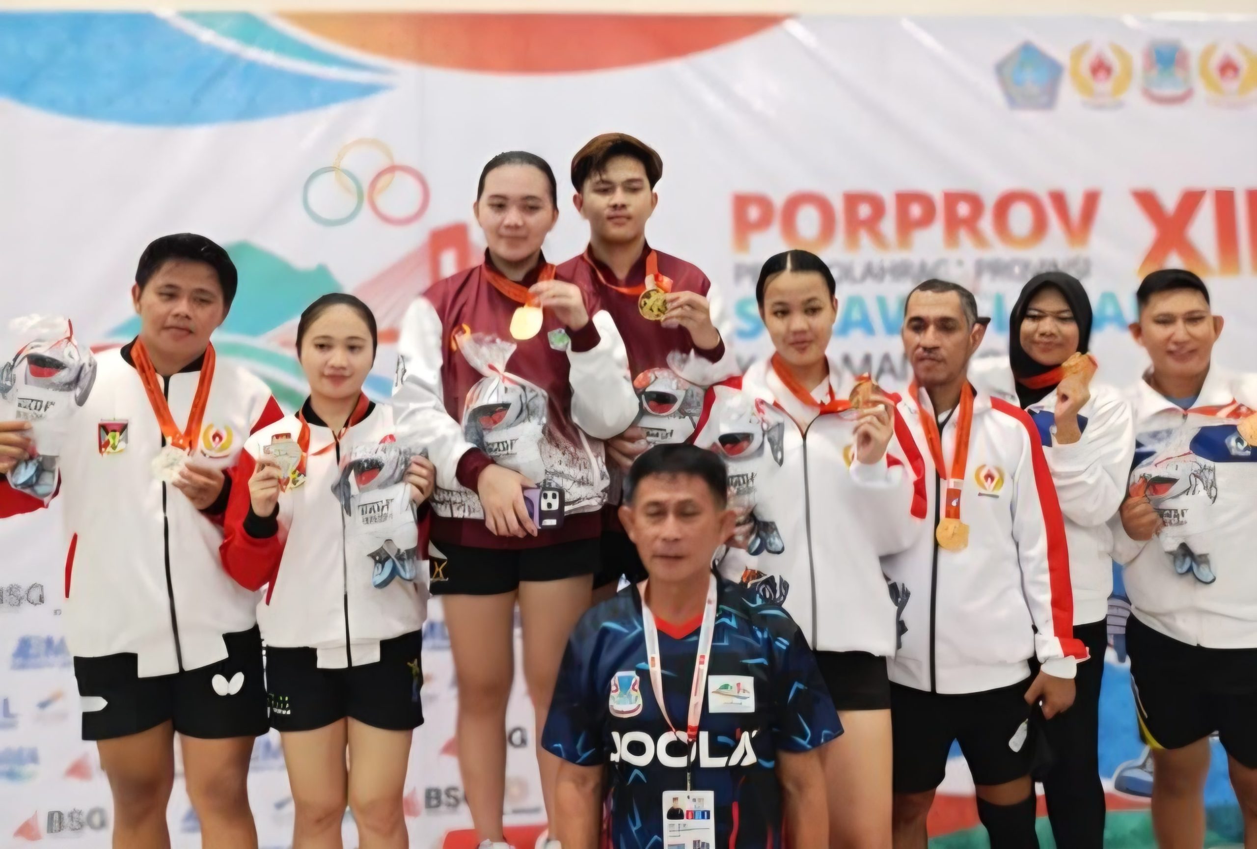 Pertandingan yang berlangsung di Aula Katolik Hati Kudus Karombasan Manado, Kamis 20 November 2025, tim tenis meja Minahasa Utara berhasil menyegel posisi juara umum di ajang Pekan Olahraga Provinsi (Porprov) Sulut 2025.