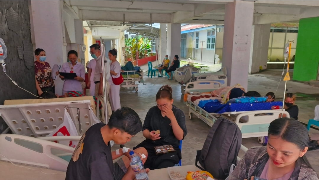 Akibat getaran gempa yang cukup kuat, puluhan pasien yang tengah menjalani perawatan terpaksa dievakuasi dari ruangan bertingkat ke lantai dasar gedung rumah sakit demi alasan keselamatan. Beberapa di antaranya bahkan masih dalam kondisi terpasang infus saat proses evakuasi berlangsung.