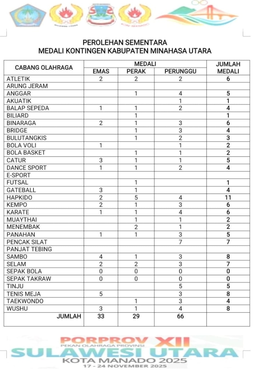“Terima kasih kepada seluruh kontingen. Kebersamaan dan perjuangan kalian adalah kebanggaan bagi Minahasa Utara. Semoga pengalaman ini menjadi modal untuk prestasi yang lebih tinggi ke depan,” katanya.